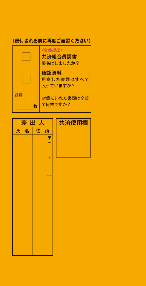 「同意事項」へ署名し、同封の返信用封筒で調書のみご提出ください。
